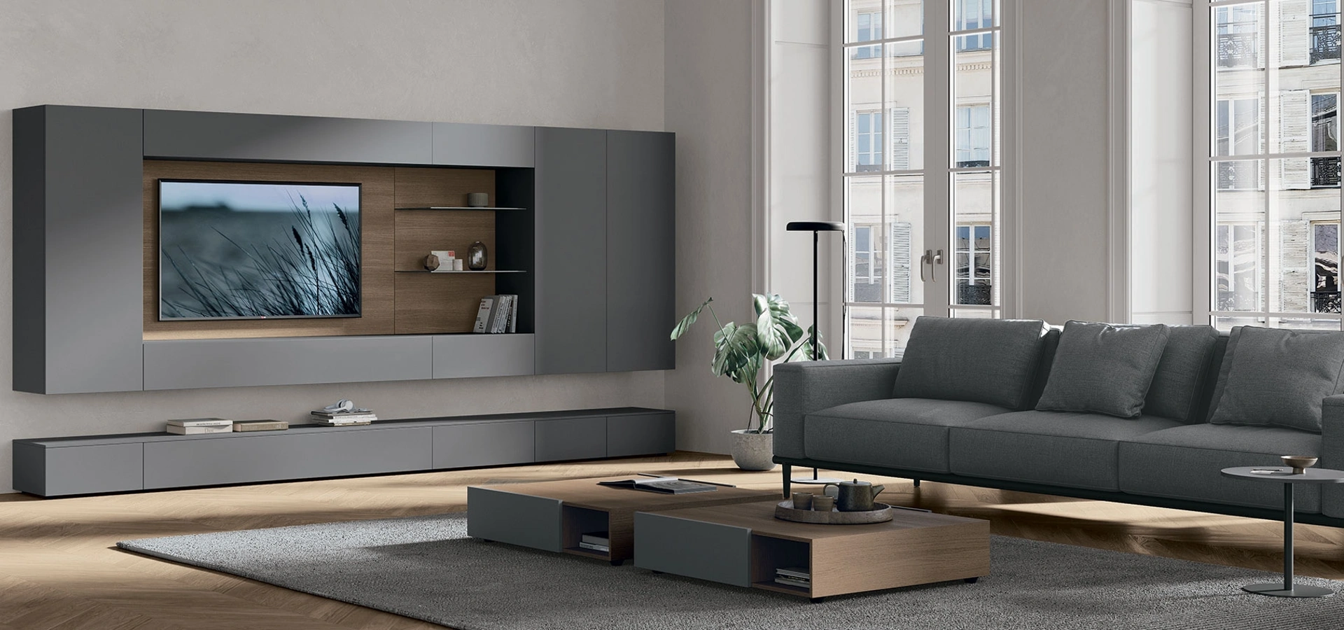 Attraverso un gioco dinamico di accostamenti fra elementi a giorno o vani chiusi, le Pareti Attrezzate moderne arredano il soggiorno sfruttando bene ogni spazio. Le Pareti Attrezzate hanno conquistato un posto fondamentale nella zona giorno delle nostre case: sono mobili plurifunzionali e salvaspazio sempre realizzabili su misura. Per informazioni e preventivi sulla Parete Attrezzata Atlante UNIT AT143 di Tomasella in foto contattaci! Il modello proposto è realizzato in melaminico, ma grazie ad una vasta gamma di texture, cromie e conformazioni, potrà adattarsi a stili di ogni genere.
