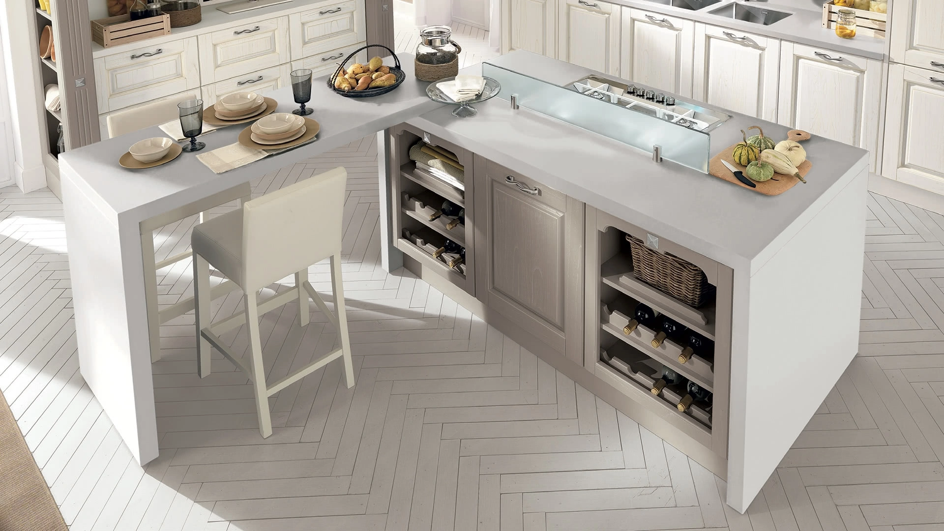 Le più esclusive Cucine Classiche con isola ti aspettano per arricchire l'ambiente seguendo la moderna evoluzione dell'arredo con uno stile classico intramontabile. Scopri la Cucina classica Laura 03 di Lube nella fotografia: lasciati affascinare dalle linee sinuose di questo modello in legno. Le soluzioni classiche con isola disponibili in negozio si distinguono per il carattere forte e il tipico aspetto romantico, che diviene in questo caso personale e inimitabile. Lube studia con attenzione l’evoluzione di un stile di vita in costante cambiamento, per progettare soluzioni confortevoli sempre al passo con le nuove tendenze ma di spiccato stile classico.