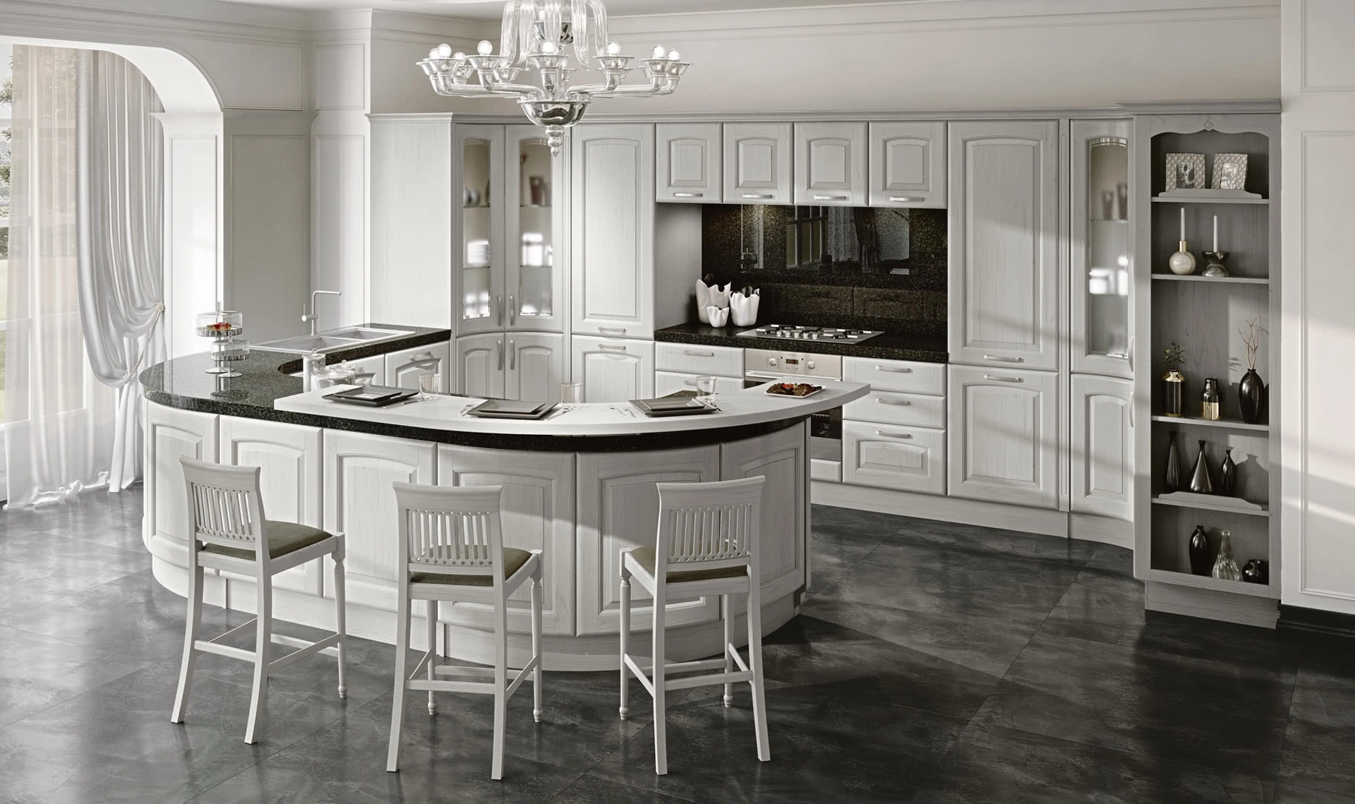 Se vuoi un prodotto di richiamo classico, che duri a lungo nel tempo mantenendo la bellezza originaria, opta per una cucina classica in legno resistente e di ottima fattura, come quella qui disponibile. Scopri nel nostro showroom un ricco catalogo di soluzioni della firma: la serie completa Lube ti aspetta! Solo con le più esclusive soluzioni con penisola potrai allestire lo spazio secondo le tue personali esigenze abitative ma in perfetto stile classico. La Cucina classica Veronica 02 di Lube in foto propone un design assai funzionale, elegante e sofisticato, portavoce del tipico gusto romantico delle Cucine Classiche.